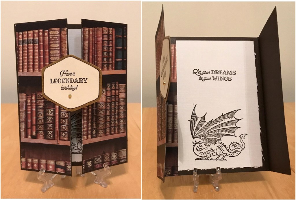 This adorable card is inspired by the Gatefold style card as demonstrated in Linda Heller’s YouTube video https://youtu.be/ut3dYMfzlCY?si=NVoDADZ8rqgxBpHt only designed in the portrait format. This card features a center fold opening. The card is cut 8-1/2″ x 5-1/2″ and scored on both of the 8-1/2″ sides at 2-1/8″ to create the center opening of the card.