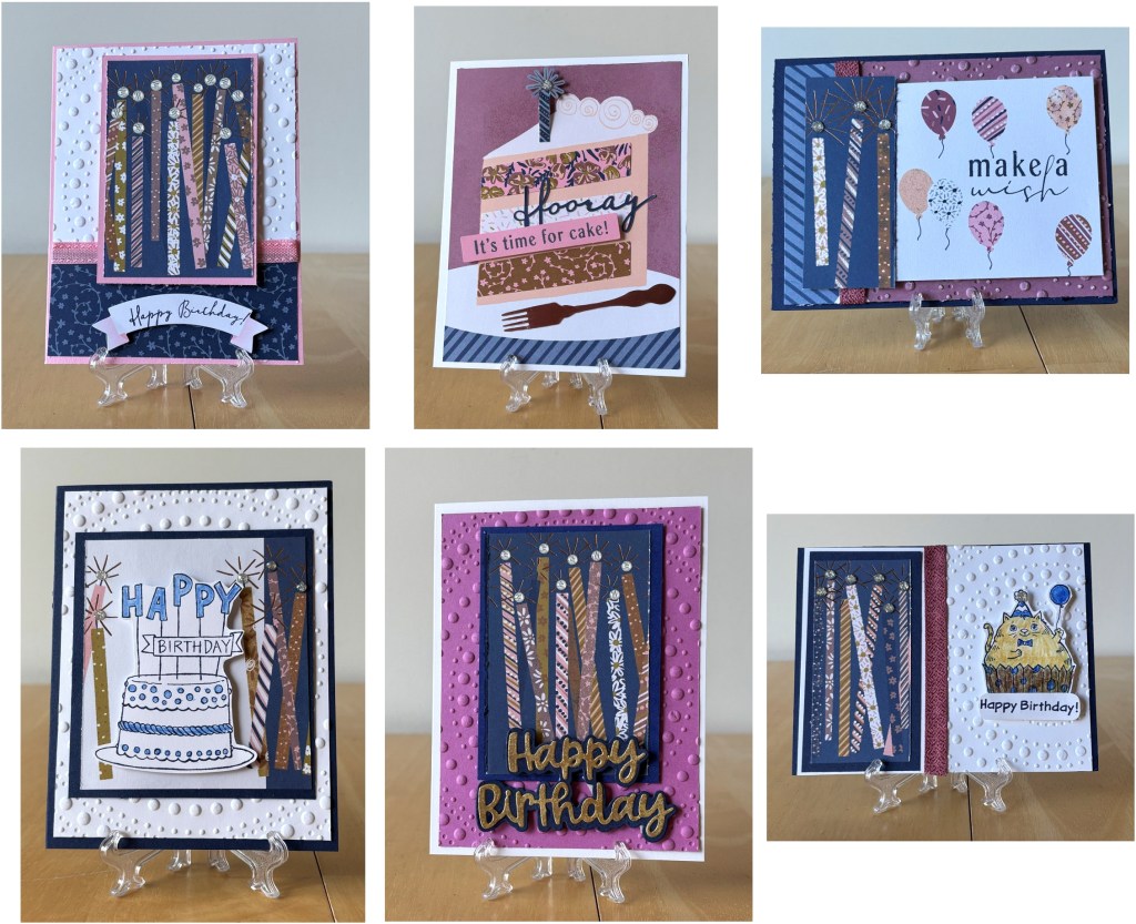 The Embossing of the first layer adds a party-like flare as a base to the focal points on cards 1,3,4,5 and 6. Cards 3 and 6 are my own designs. Card #2 is made almost exactly as specified in the kit directions with the exception of mounting the first layer on a white card base. Cards 1 and 5 were inspired by Robin’s Creations YouTube video https://youtu.be/U1GAoN3UIYM?si=6MeqmwBNweaP-aoV